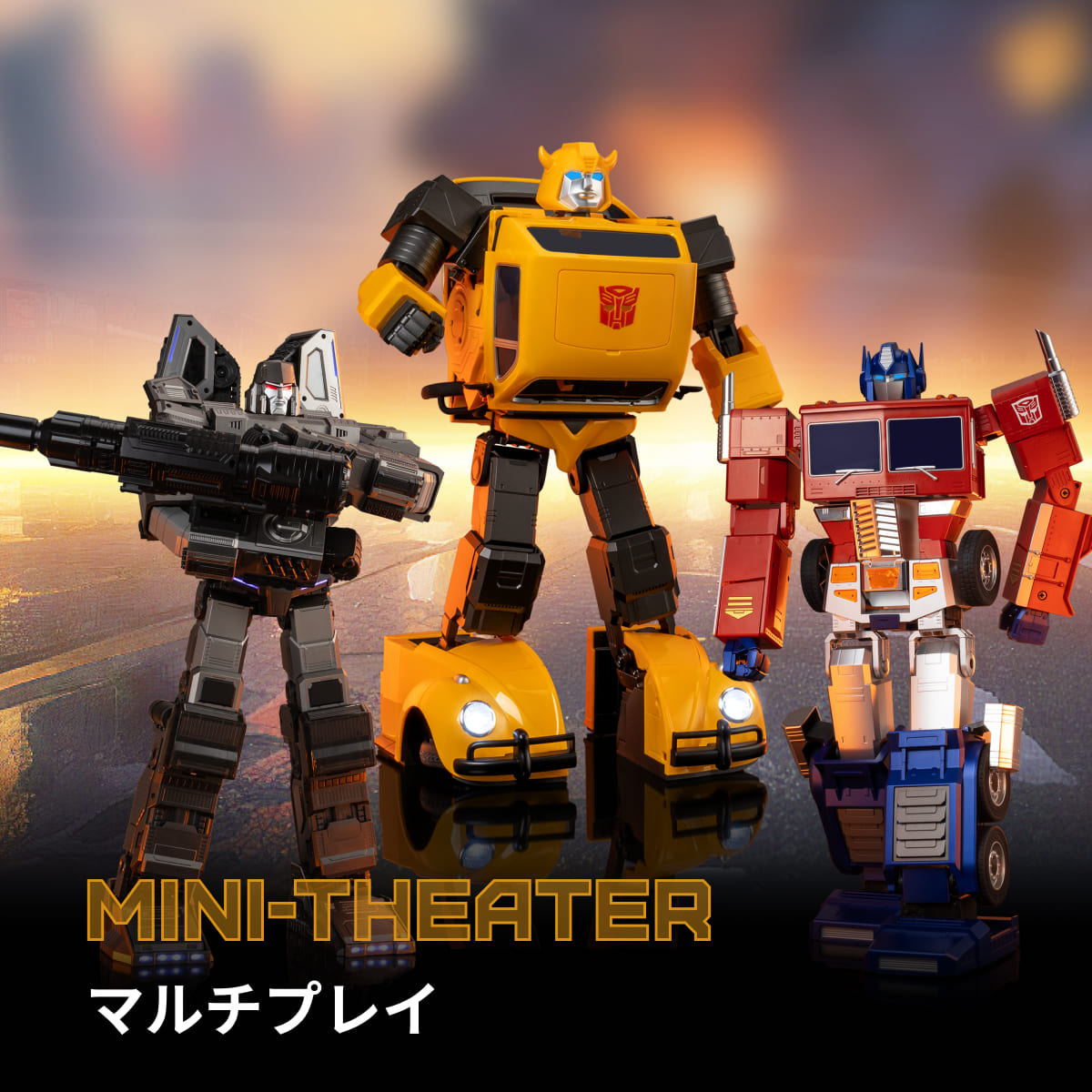 別売りの「フラッグシップオプティマスプライム」、「エリートオプティマスプライム」、「フラッグシップメガトロン」などと連動が可能。最大3台で構成するグループショーが楽しめます。