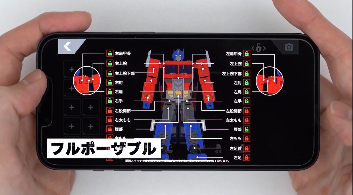 自動変形オプティマスプライムのために新規撮り下ろしされた玄田哲章氏によるボイスを収録。アニメで印象的だったセリフをはじめとした収録音声は40種におよび、さまざまなアクションとともにオプティマスプライムが喋る姿はまさに超ロボット生命体と呼べる存在と言えるだろう。音声によるコントロールはもちろんのこと、iOS/Androidに対応した専用アプリでも操作可能。さまざまなコマンドはもちろんのこと、アプリを使ってリモートコントロールで走行、変形、様々なアクションを楽しめる。