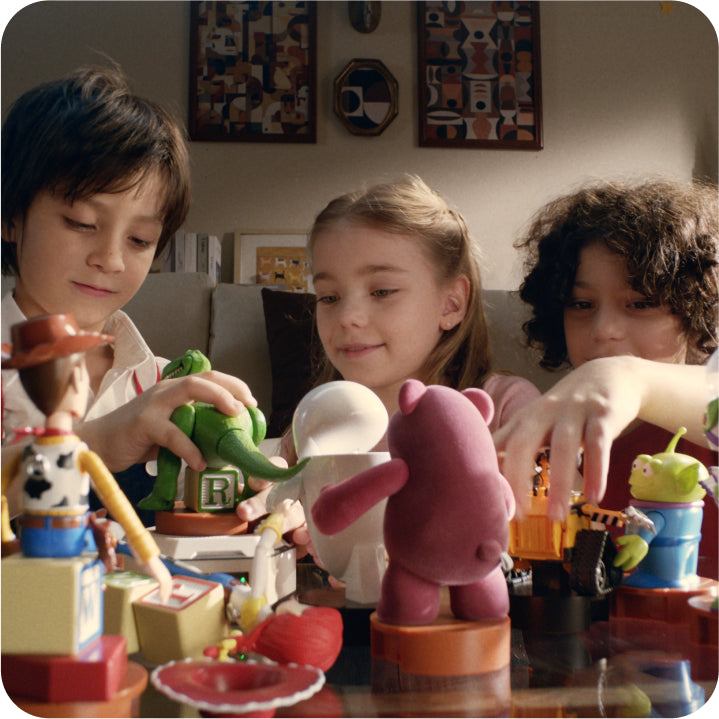 1つのスマートベースで、すべてのミニロボットに対応。ウッディをセットしたり、バズに切り替えたり、ウォーリーを動かしたり、キャラクターの入れ替えは素早く簡単で、遊ぶたびに新しい楽しさが広がります。