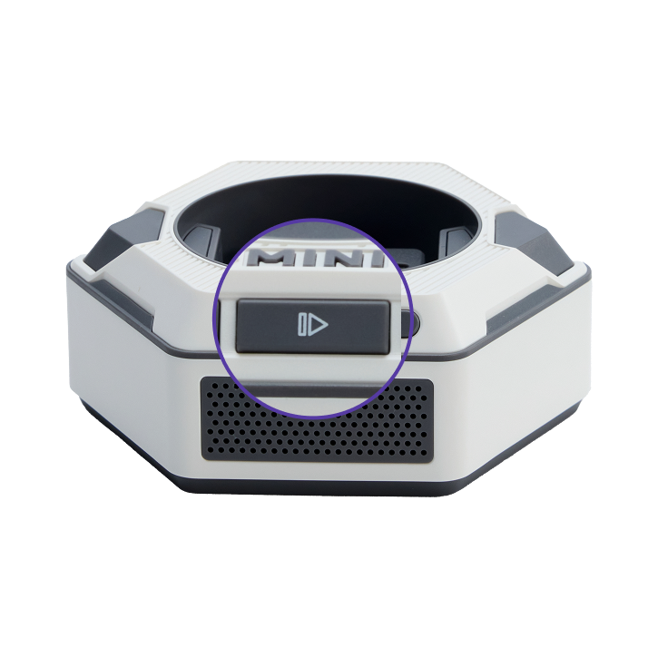 ベースにある3つのボタンで、アクションの再生、音量調整、再生モードの切り替えが簡単に操作可能。アプリも不要、面倒な設定もなし。ボタンを押すだけで楽しめます。