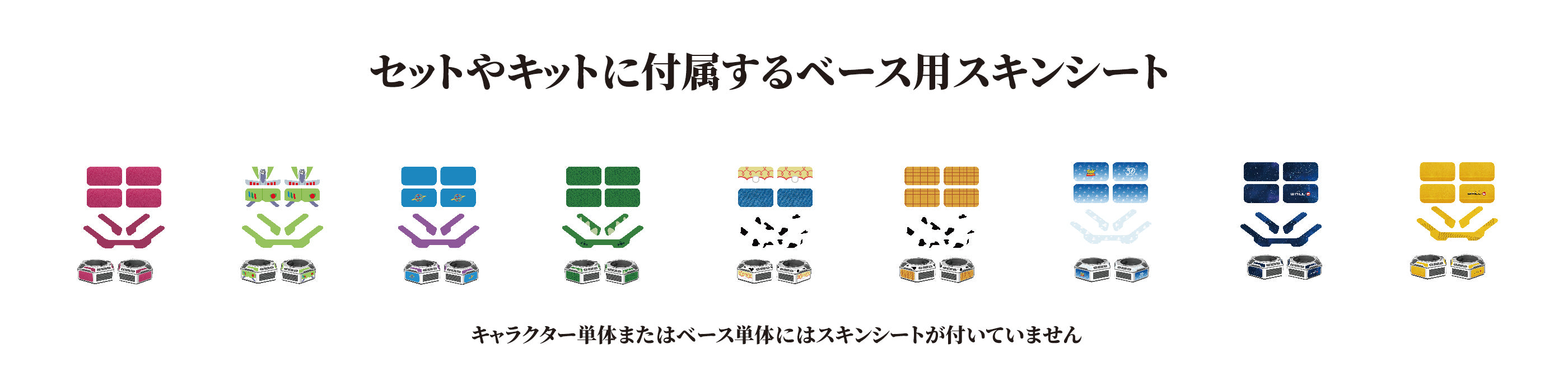 1つのベースに1体の人気キャラクターを楽しめるキット。ベースにスキンシート付属