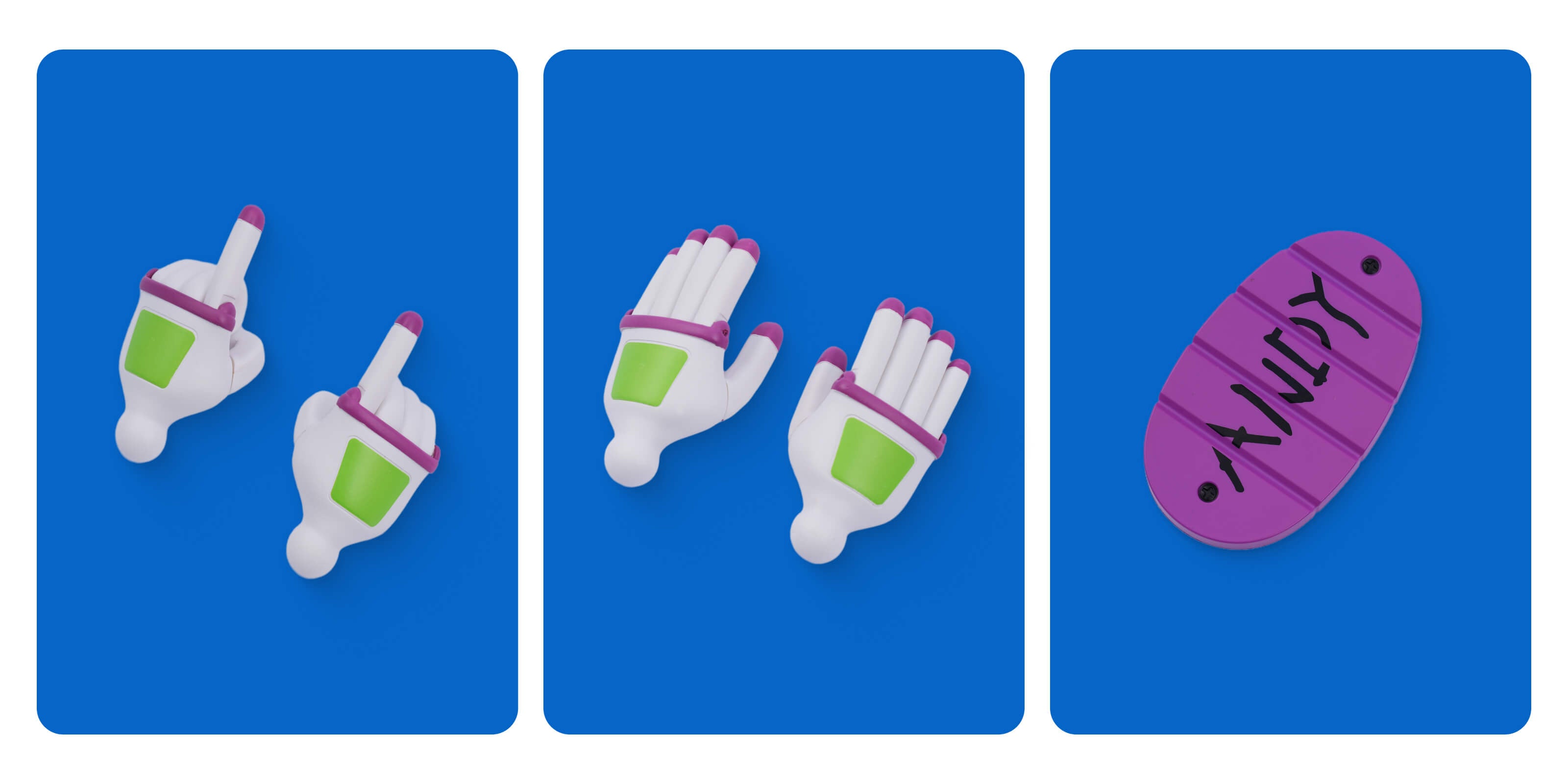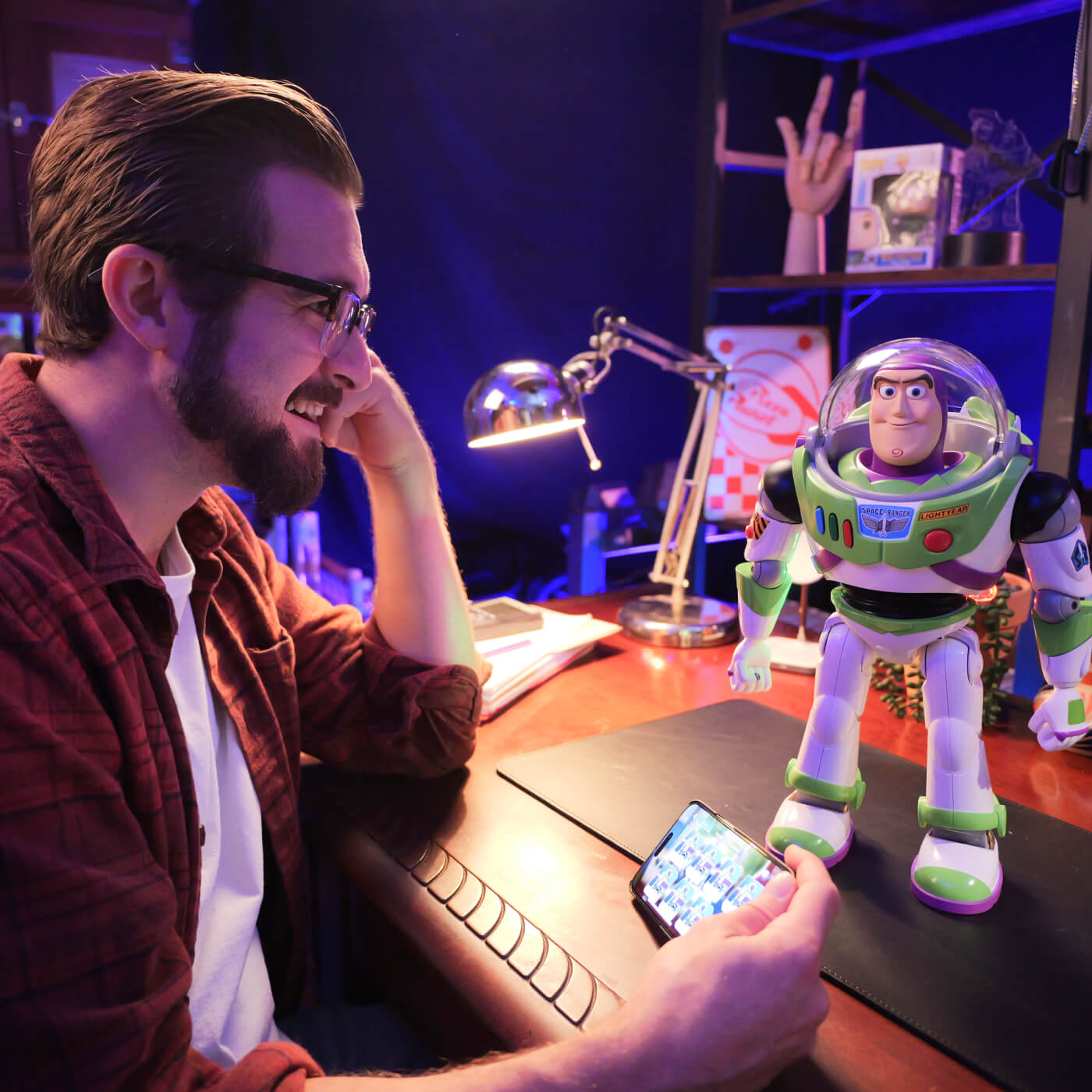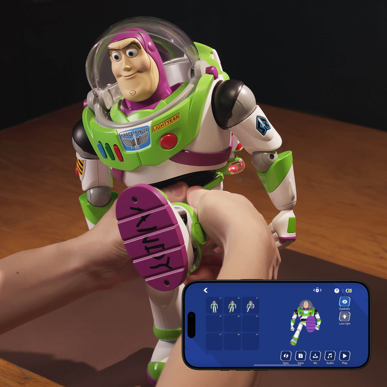 バズのポーズを手で調整して動きを保存するだけ。象徴的な映画のシーンを簡単に再現したり、実際に触れながら新しいシーンを作り出せます!