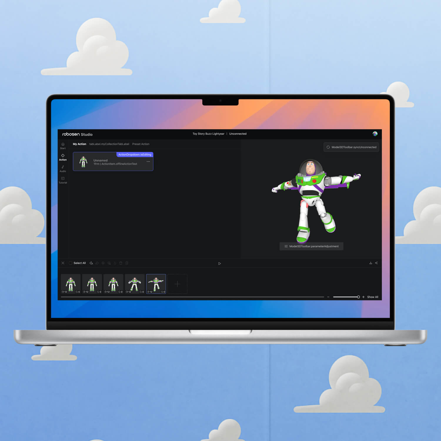 Robosen Studioで完全カスタマイズ。豊富なアクションとサウンドのライブラリを使って、独自のバズの冒険をスクリプト化。複雑な振り付けやユニークなインタラクションを探求しよう!