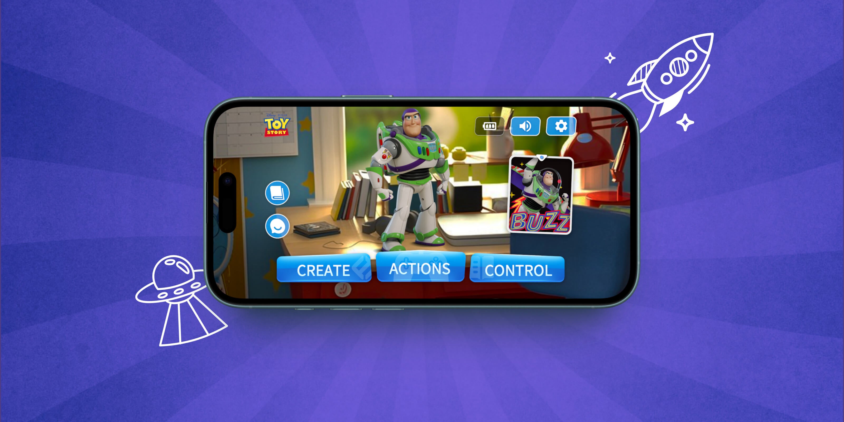 バズの世界へようこそ!アプリの「Create」「Actions」「Control」といった3つの主要機能で、自由に創造し、演出し、コントロールする、これまでにない体験をお楽しみください!